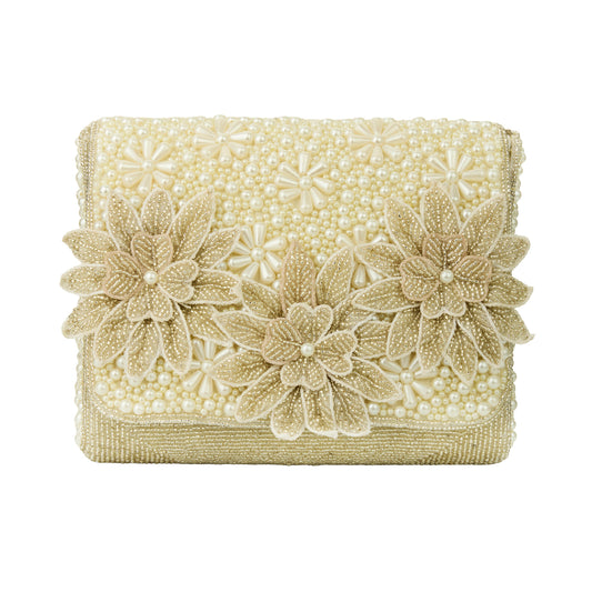 Eleanor Pearl and Champagne Beaded Floral Clutch