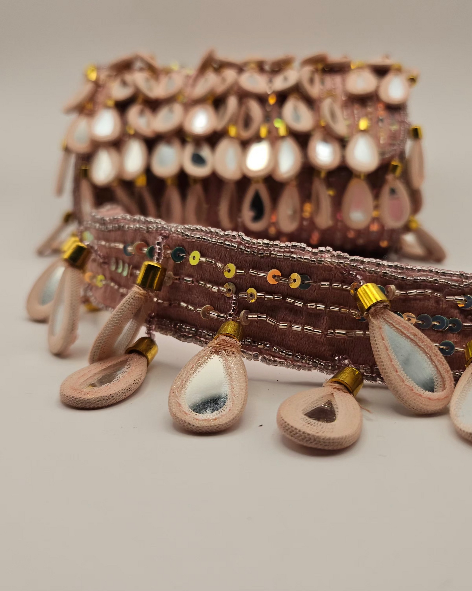 • Made of fabric hand embroidered with sequins and tiny beads with mirrors