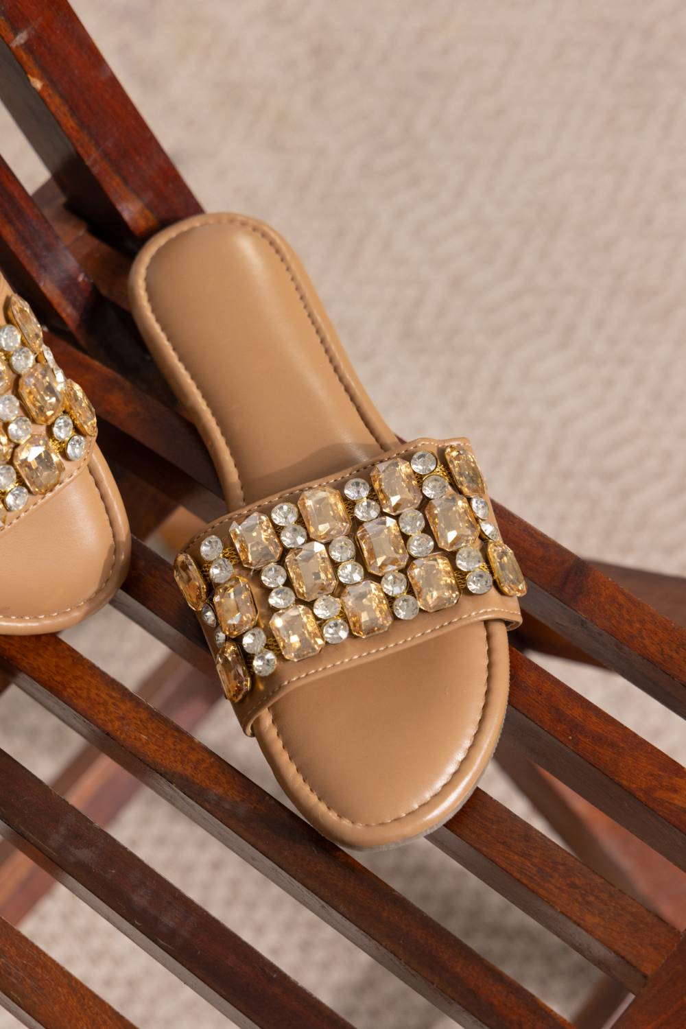 Topaz is elegance with an edge. Slim fits, delicate, vintage-inspired slides topped with oversized gemstones that sparkle like old Hollywood—but made to move with you today. Chic, bold and oh so glam!